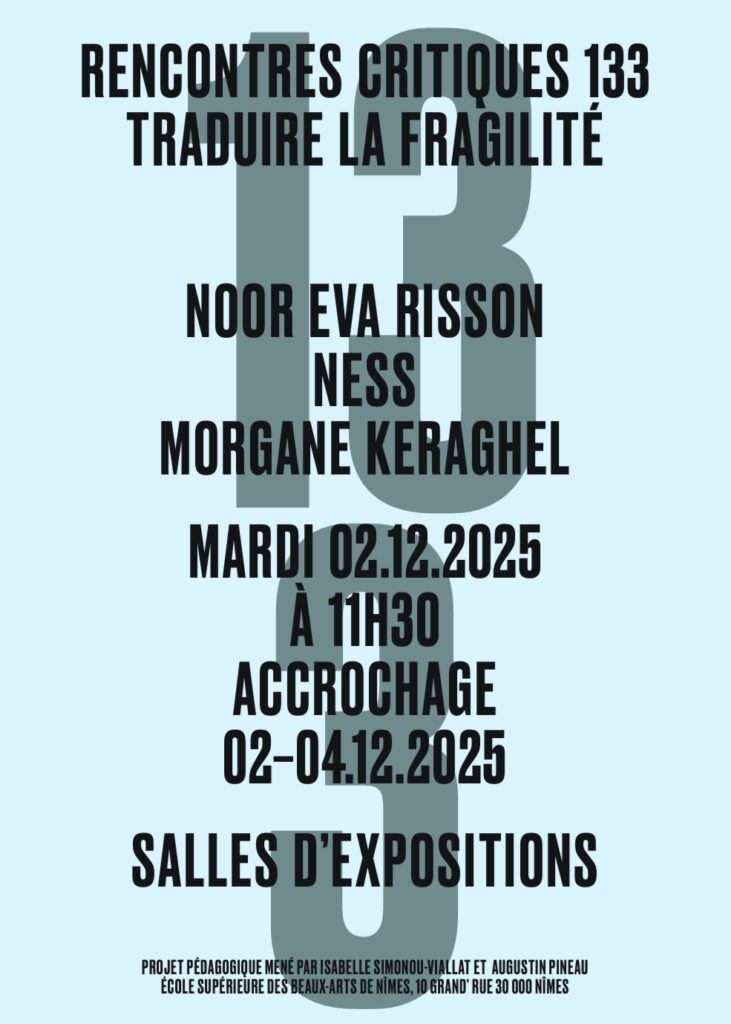Rencontres Critiques n°133 : Noor Eva Risson, Ness et Morgane Keraghel.